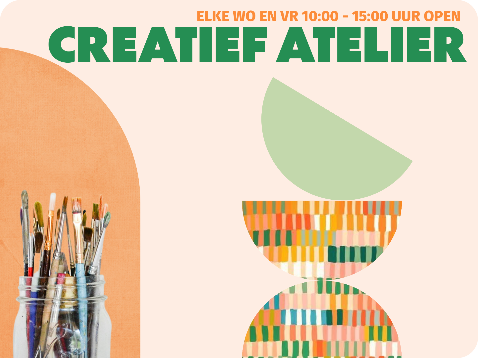 Er ligt een verscheidenheid aan creatief materiaal klaar om mee aan de slag te gaan. Ook is er een gezellige theehoekje om even in kunstboeken te bladeren. Op sommige dagdelen zijn er workshops, waar specifieke thema’s of technieken eruit gelicht worden (houdt hiervoor deze agenda in de gaten!). Er is in ieder geval altijd iemand van ons creatief team erbij, die je vragen kan beantwoorden en je op weg kan helpen. Voel je ook vrij om werk of materiaal vanuit huis mee te nemen.