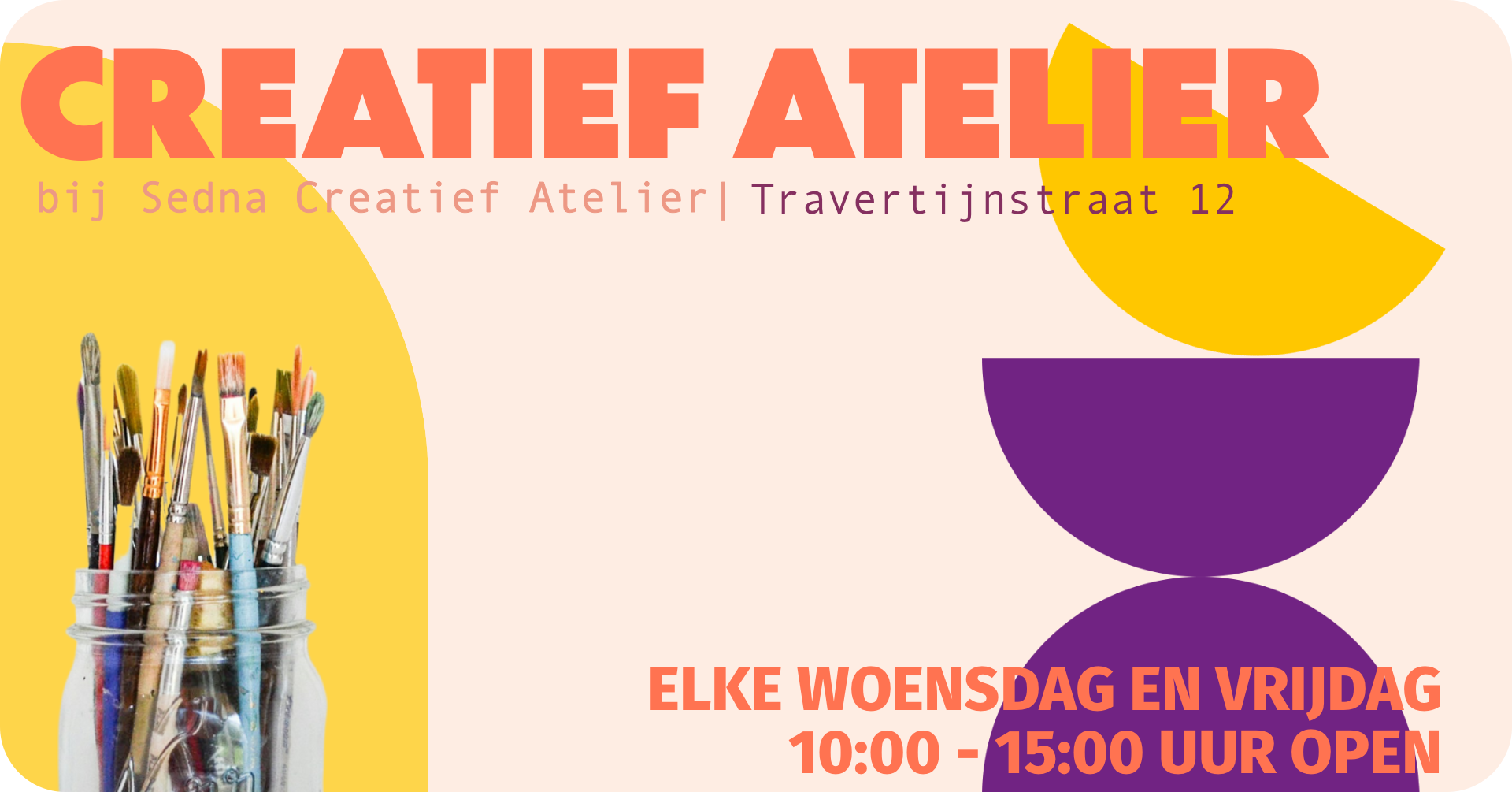 Er ligt een verscheidenheid aan creatief materiaal klaar om mee aan de slag te gaan. Ook is er een gezellige theehoekje om even in kunstboeken te bladeren. Op sommige dagdelen zijn er workshops, waar specifieke thema’s of technieken eruit gelicht worden (houdt hiervoor deze agenda in de gaten!). Er is in ieder geval altijd iemand van ons creatief team erbij, die je vragen kan beantwoorden en je op weg kan helpen. Voel je ook vrij om werk of materiaal vanuit huis mee te nemen.