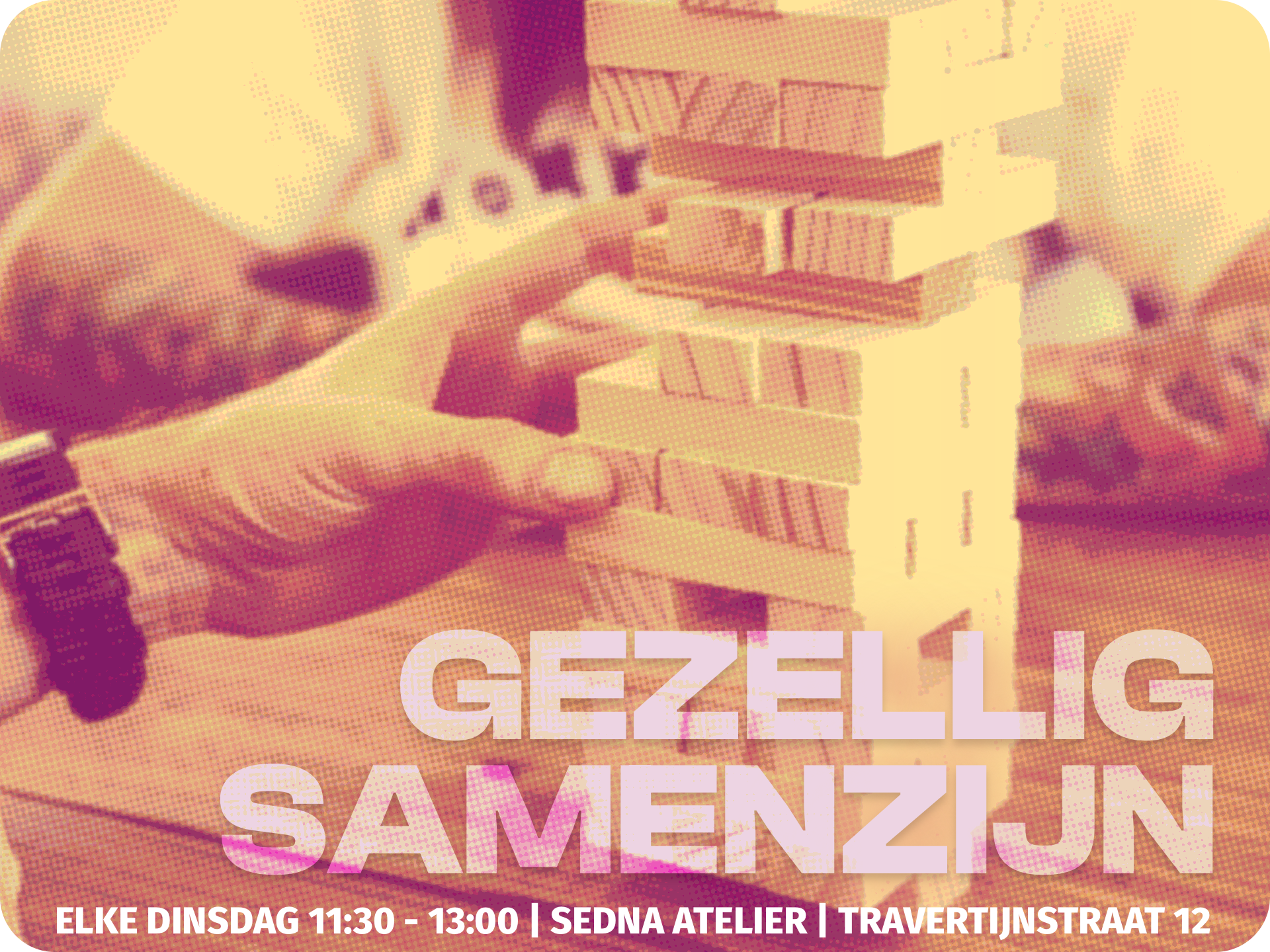 Wees welkom elke dinsdag in de Travertijnstraat 12 Vinkhuizen, waar samenzijn en ontspanning centraal staan. Gezellig mensen ontmoeten bij de koffie of thee. Als je zin hebt is er ruimte om een spelletje te doen, iets te maken en/of een film te kijken. Maar gewoon fijn met elkaar kletsen kan ook.