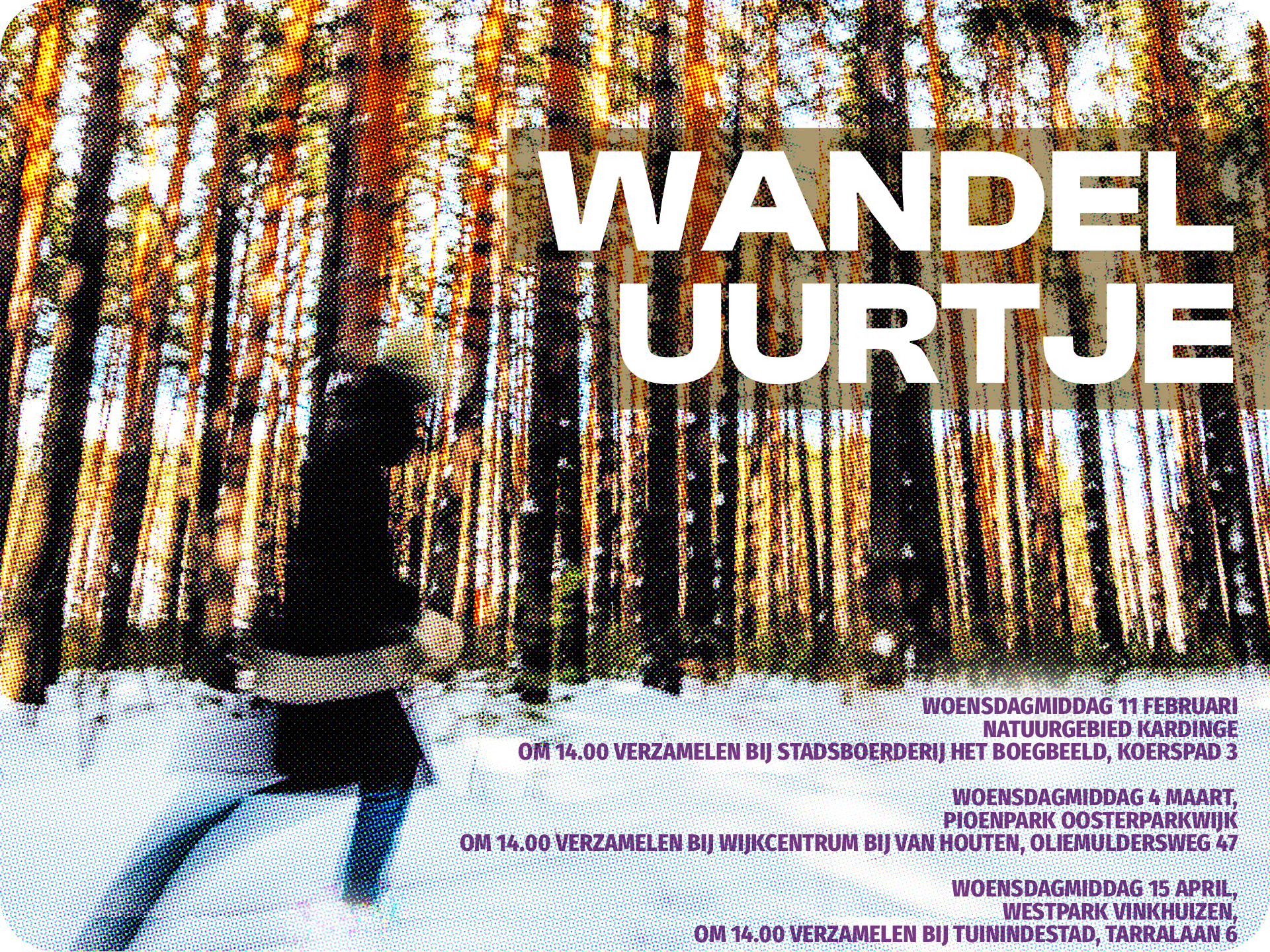 om 14:00 verzamelen bij wijkcentrum Bij Van Houten, Oliemuldersweg 47