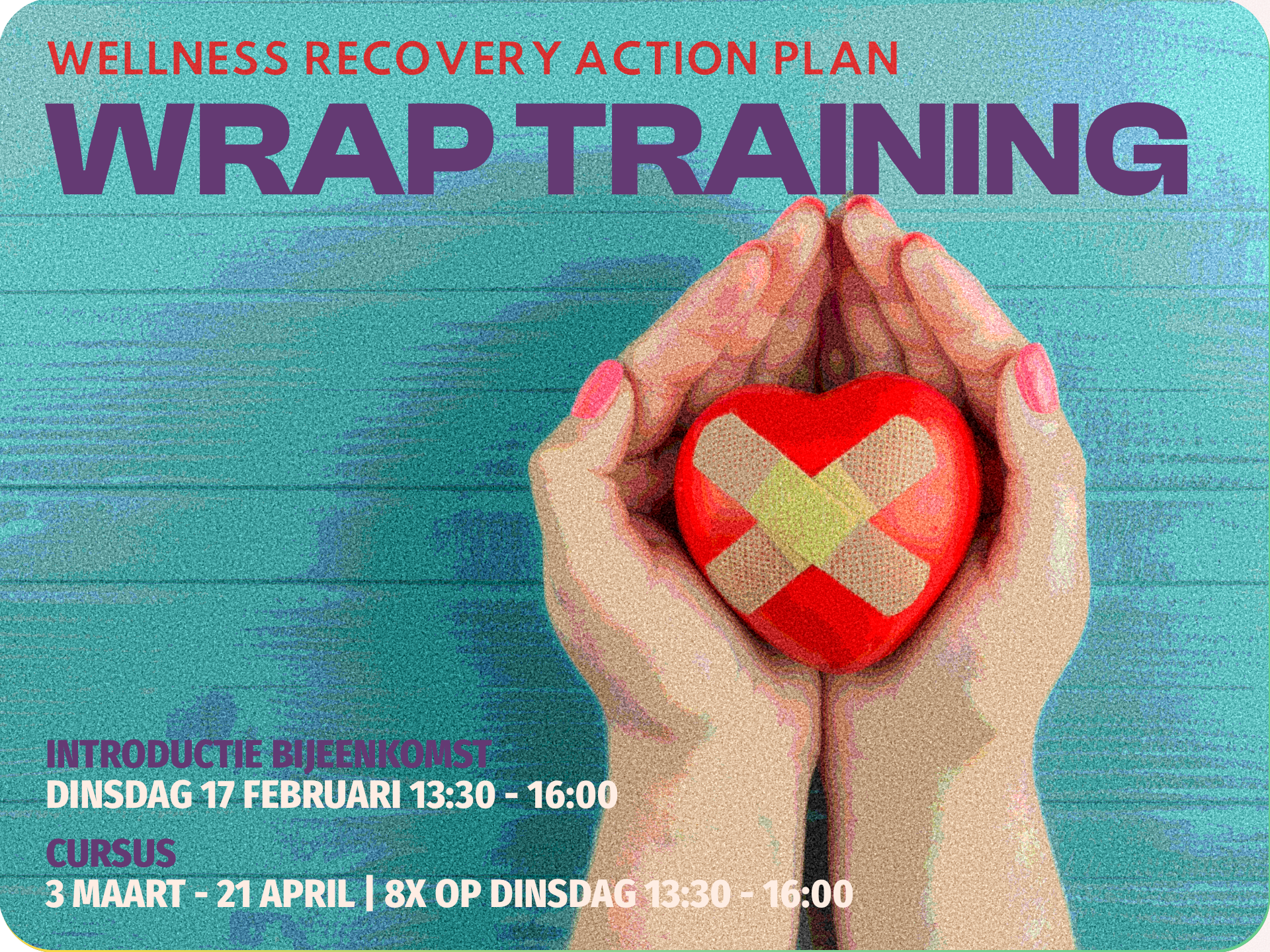 WRAP (Wellness Recovery Action Plan) is een persoonlijk plan dat je helpt om goed voor jezelf te zorgen en grip te houden op je welzijn. Het is ontwikkeld om je sterke kanten, steunbronnen en herstelstrategieën op papier te zetten, zodat je weet wat jou helpt om je goed te voelen en hoe je kunt omgaan met moeilijke momenten. WRAP is praktisch, flexibel en altijd op maat gemaakt voor jou. Het geeft structuur, vertrouwen en houvast in je dagelijks leven en herstelproces.